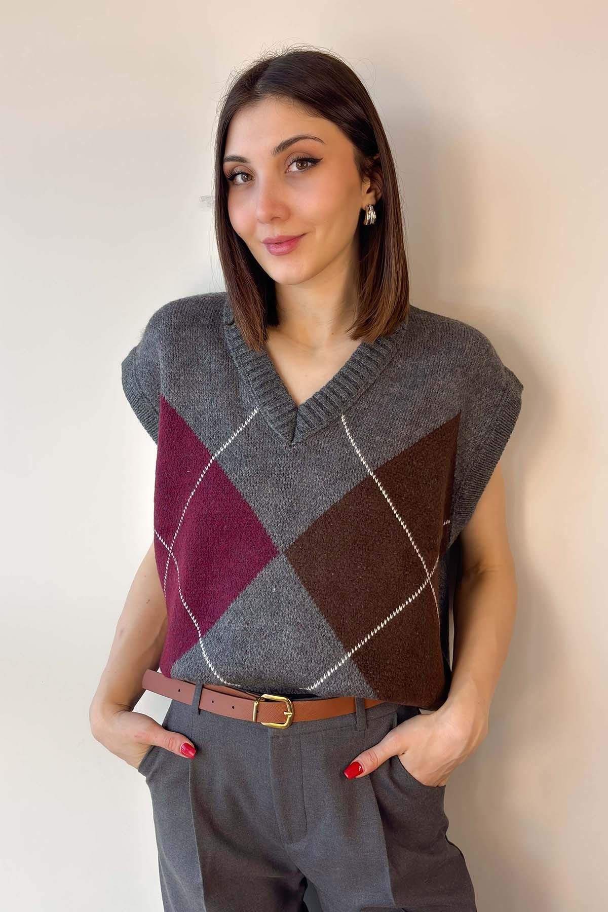Lacivert Baklava Desen Oversize Süveter Bordo Baklava Desen Oversize Süveter