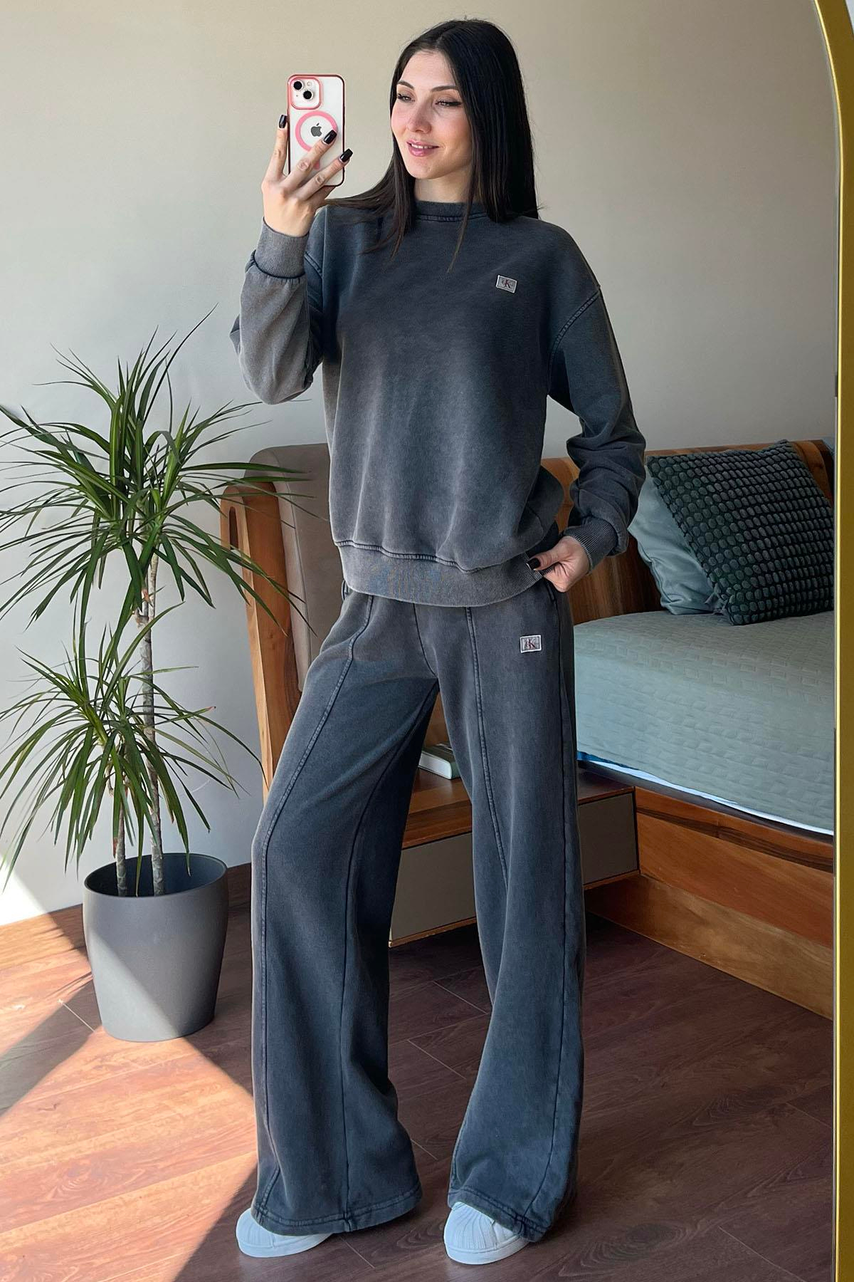 Antrasit New Logo Yıkamalı Sweatshirt Pantolon Takım