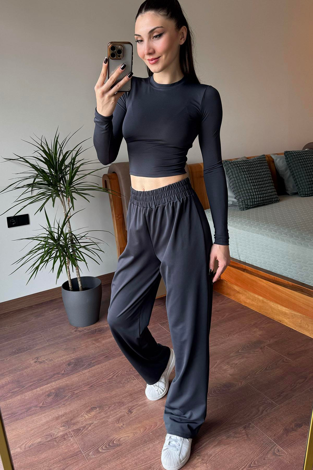 Antrasit Uzunkollu Bol Paça Dalgıç Kumaş Takım (MBPN3050)