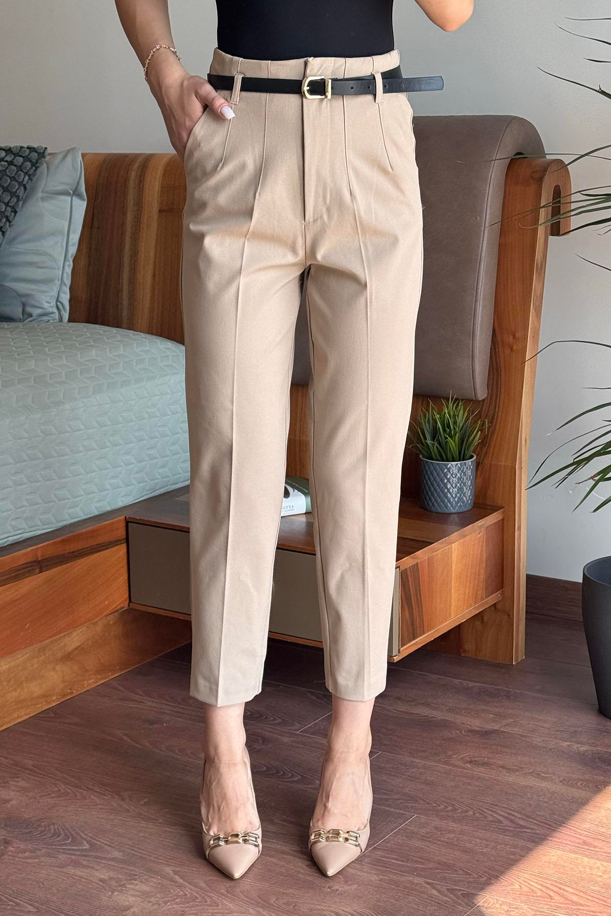 Bej Önü Flatolu Kemerli Pantolon (MBKR16546)