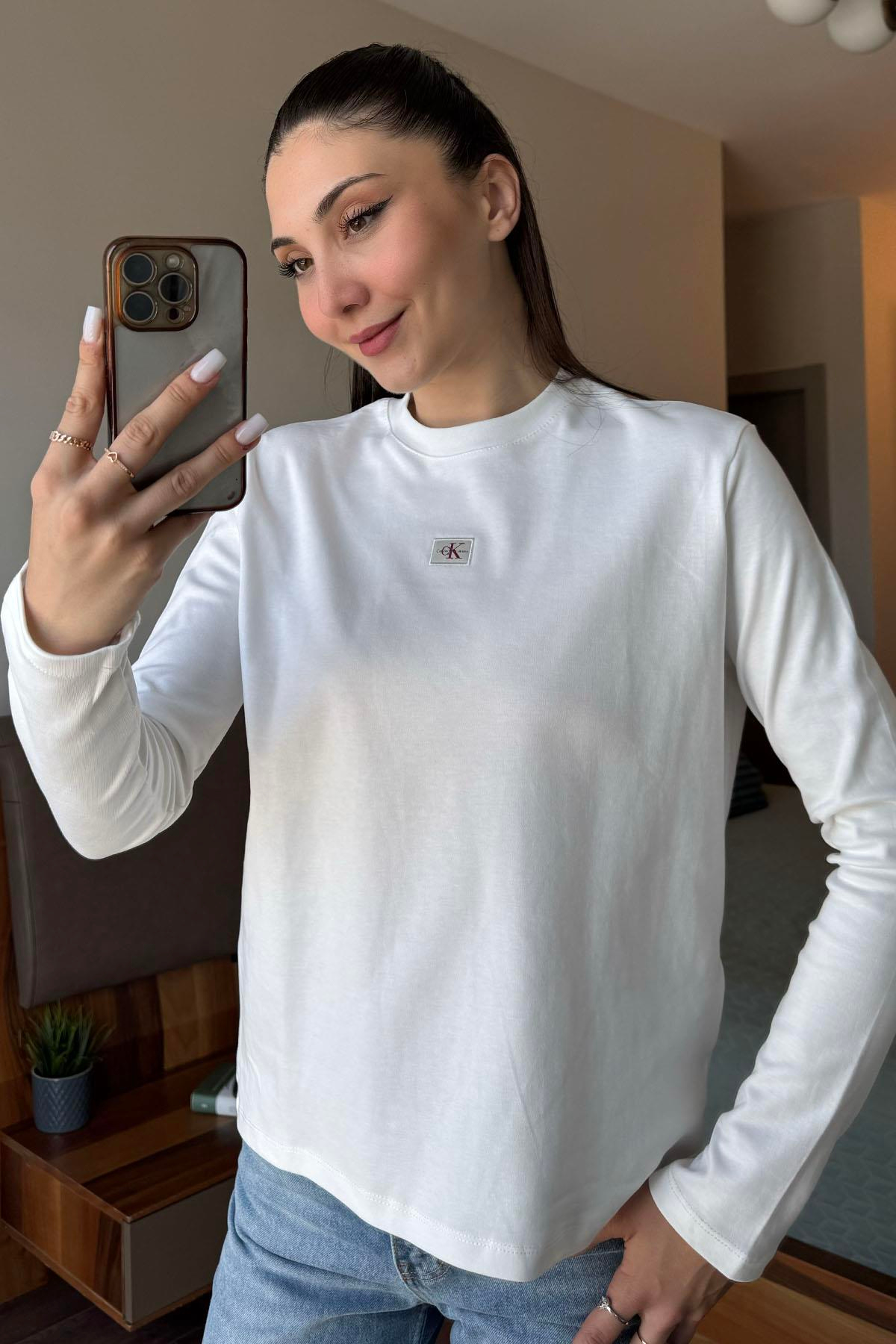 Beyaz Arma İşlemeli Uzunkollu Shirt (MBRW2174)