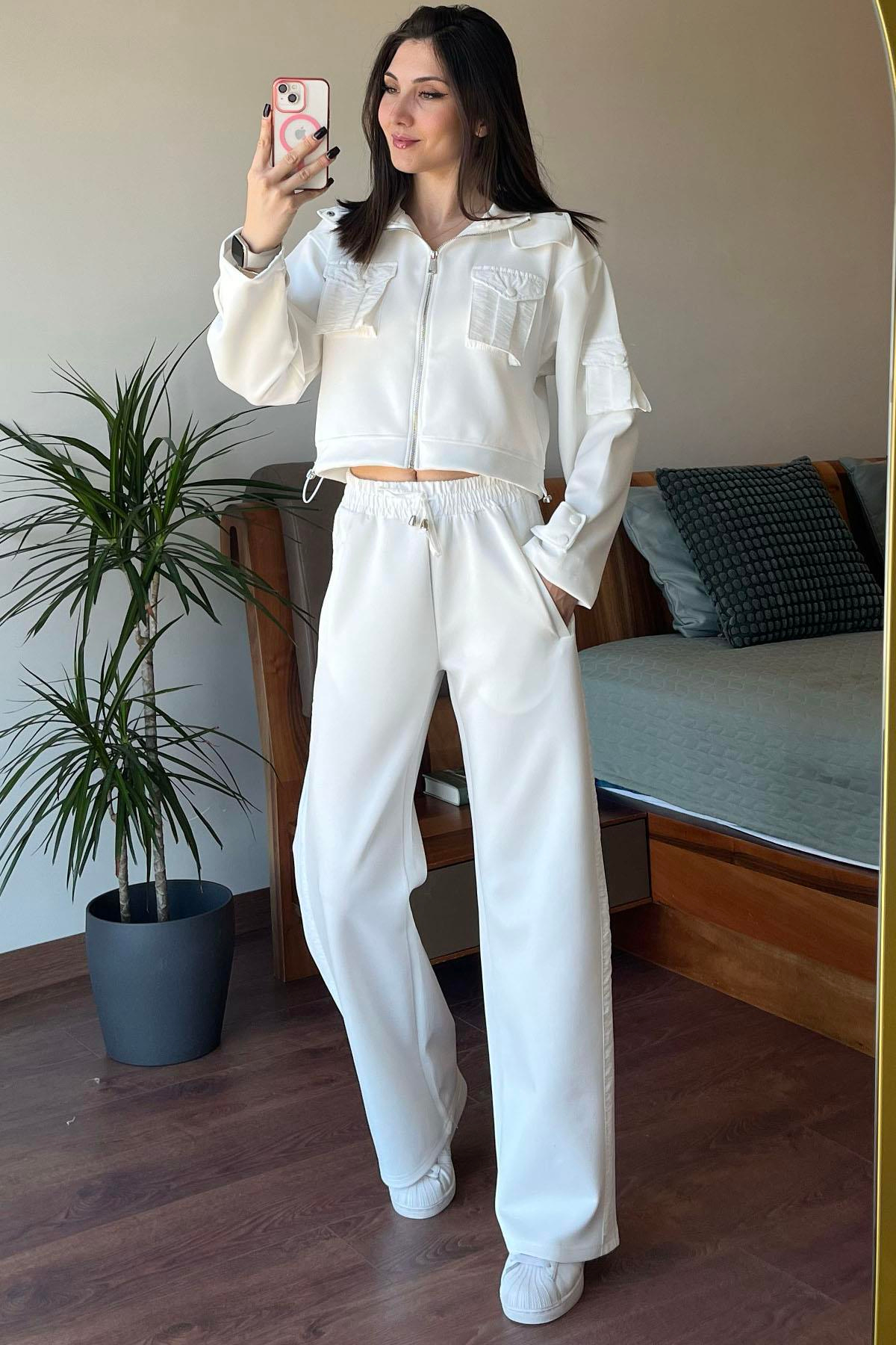 Beyaz Paraşüt Kumaş Detaylı Scuba Kumaş Takım