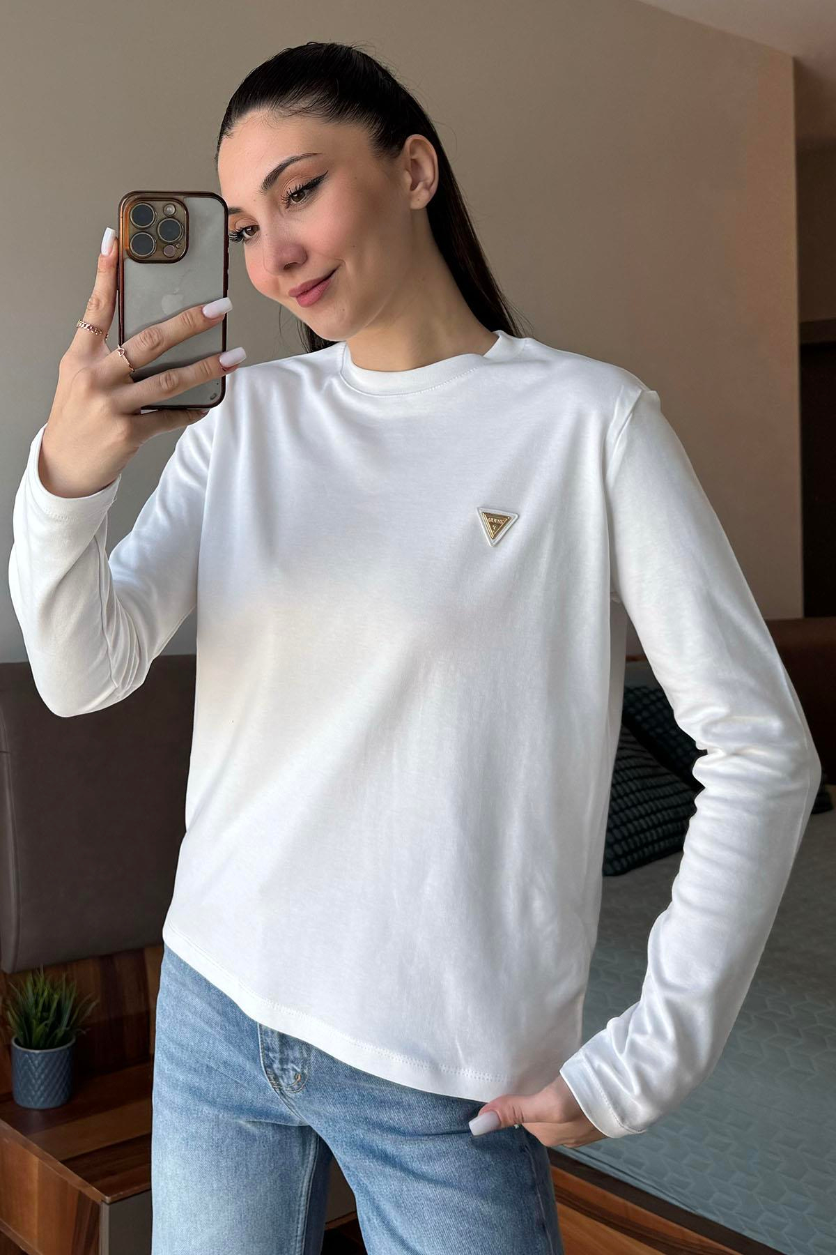 Beyaz Üçgen Armalı Uzunkollu Shirt (MBRW2177)