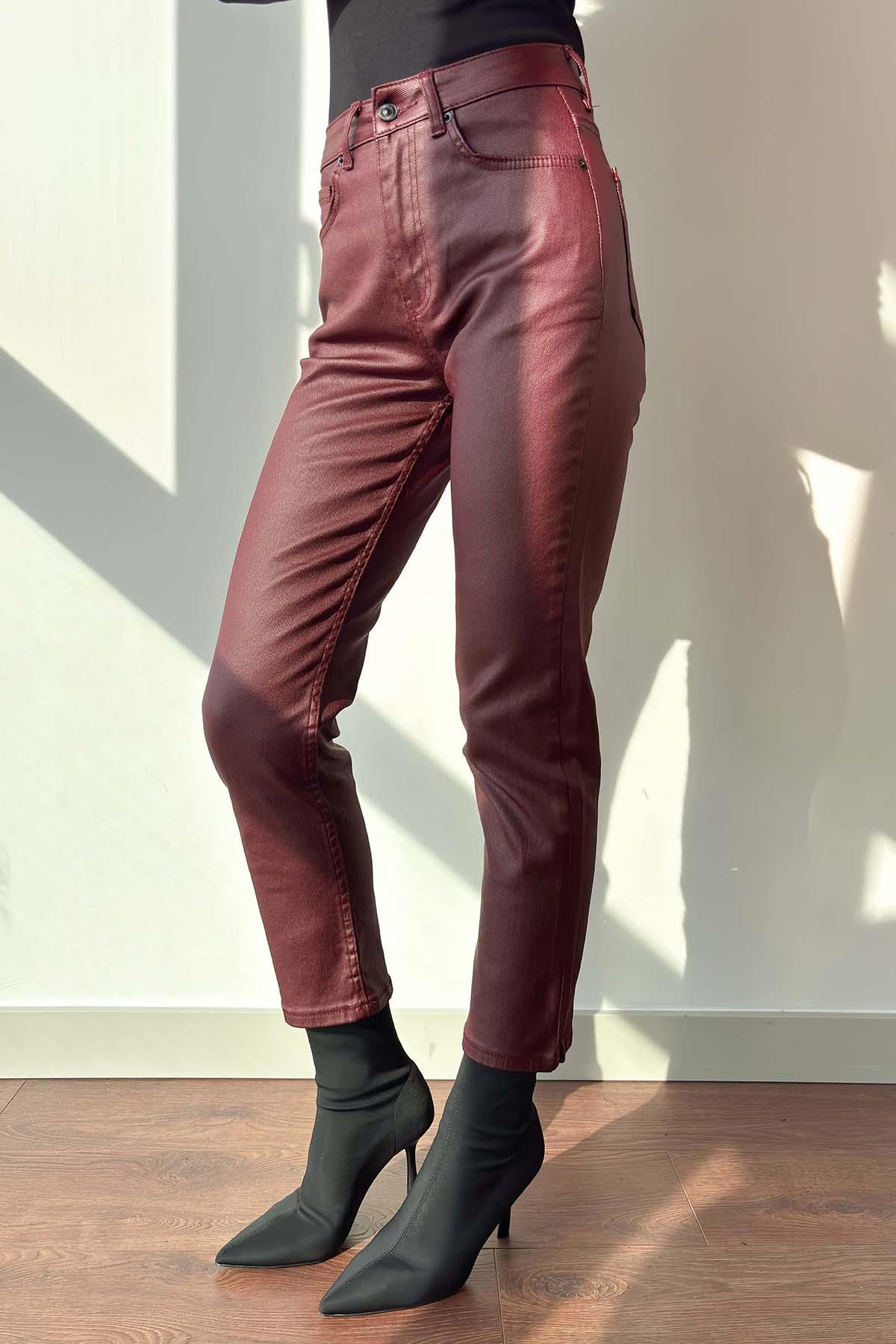 Bordo Düz Paça Mum Kaplama Boyfit Jean