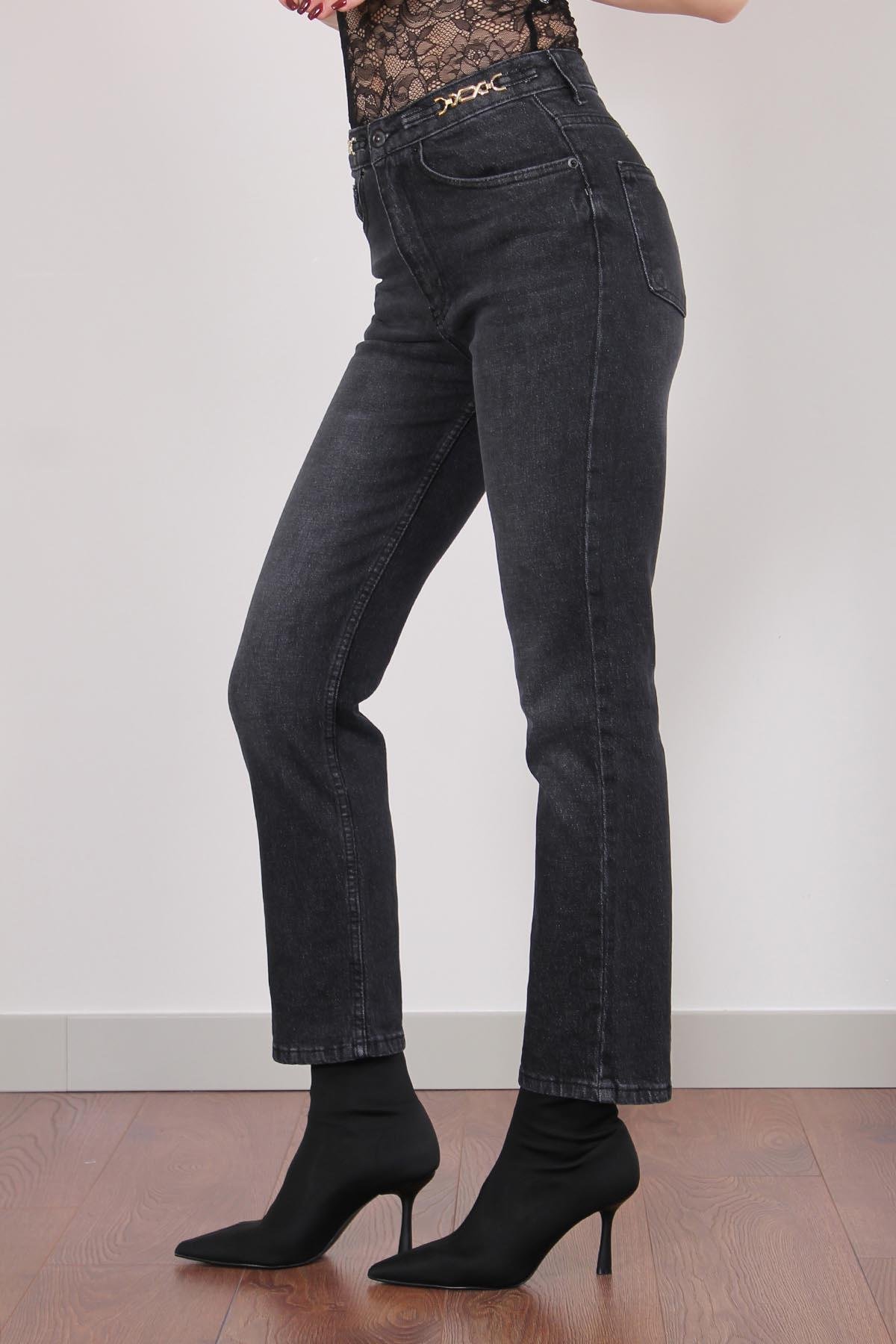Füme Beli Aksesuarlı Flare Jean Pantolon (MBTN1688)