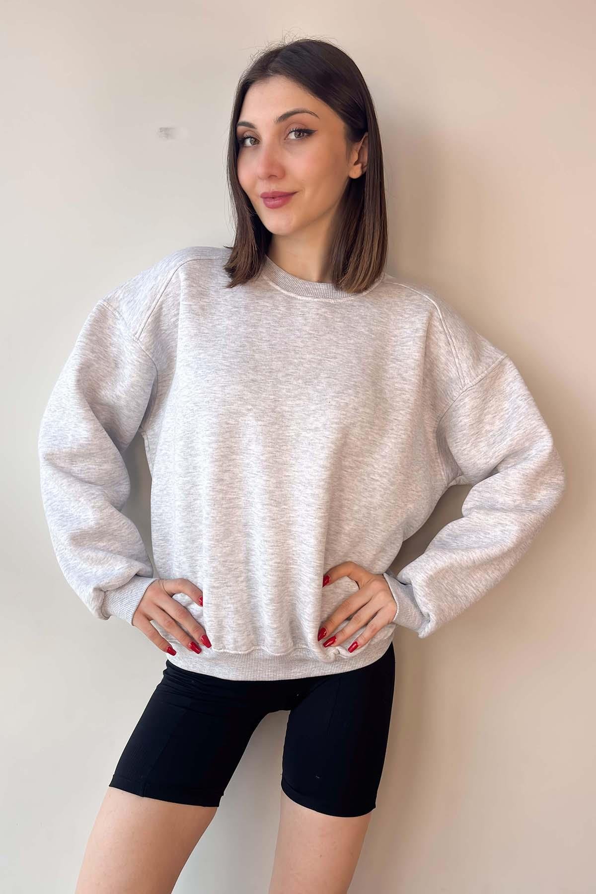 Gri Oversize Bisiklet Yaka İçi Şardonlu Üç İplik Sweatshirt