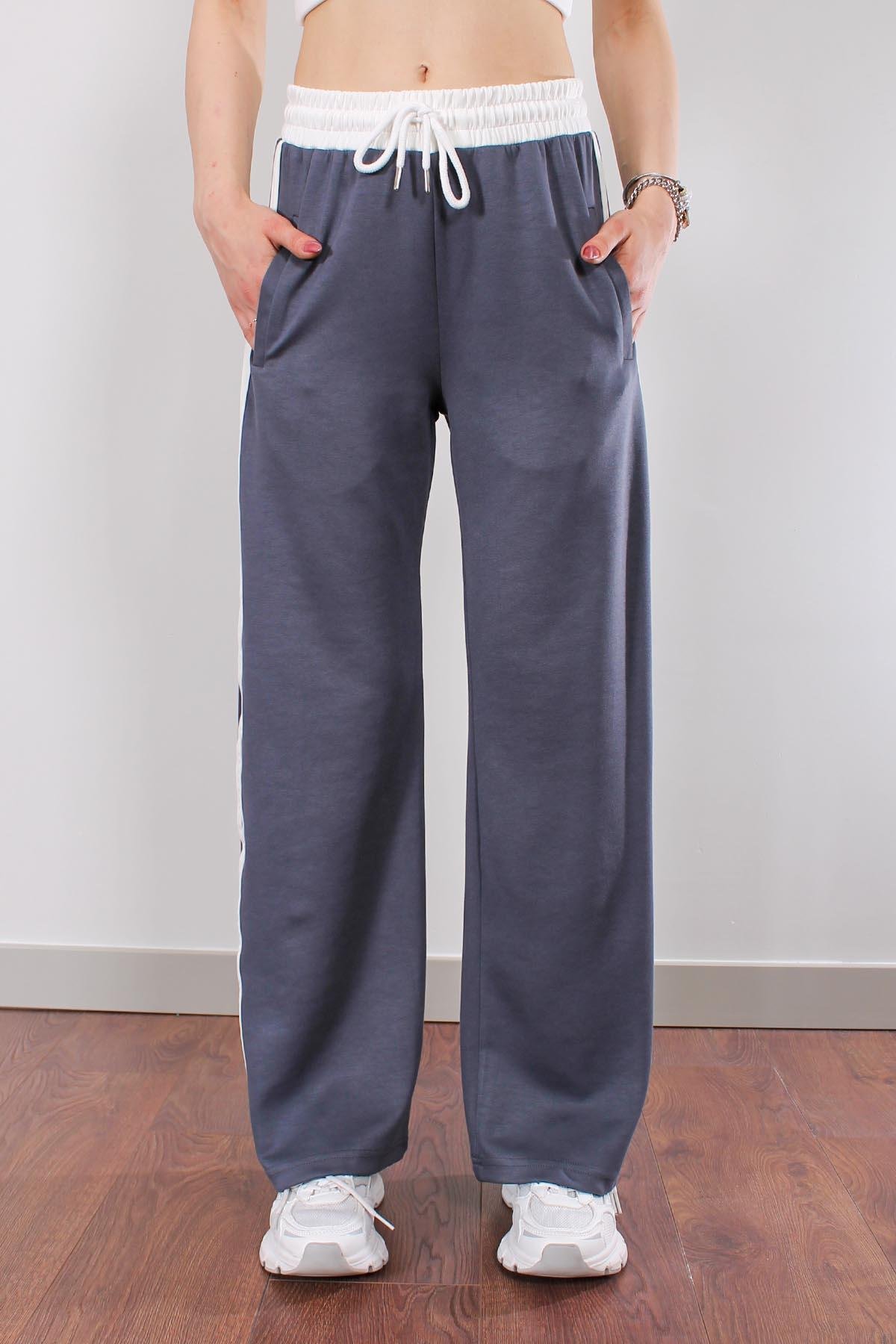 Gri Yanı Şeritli Palazzo Modal Eşofman Altı