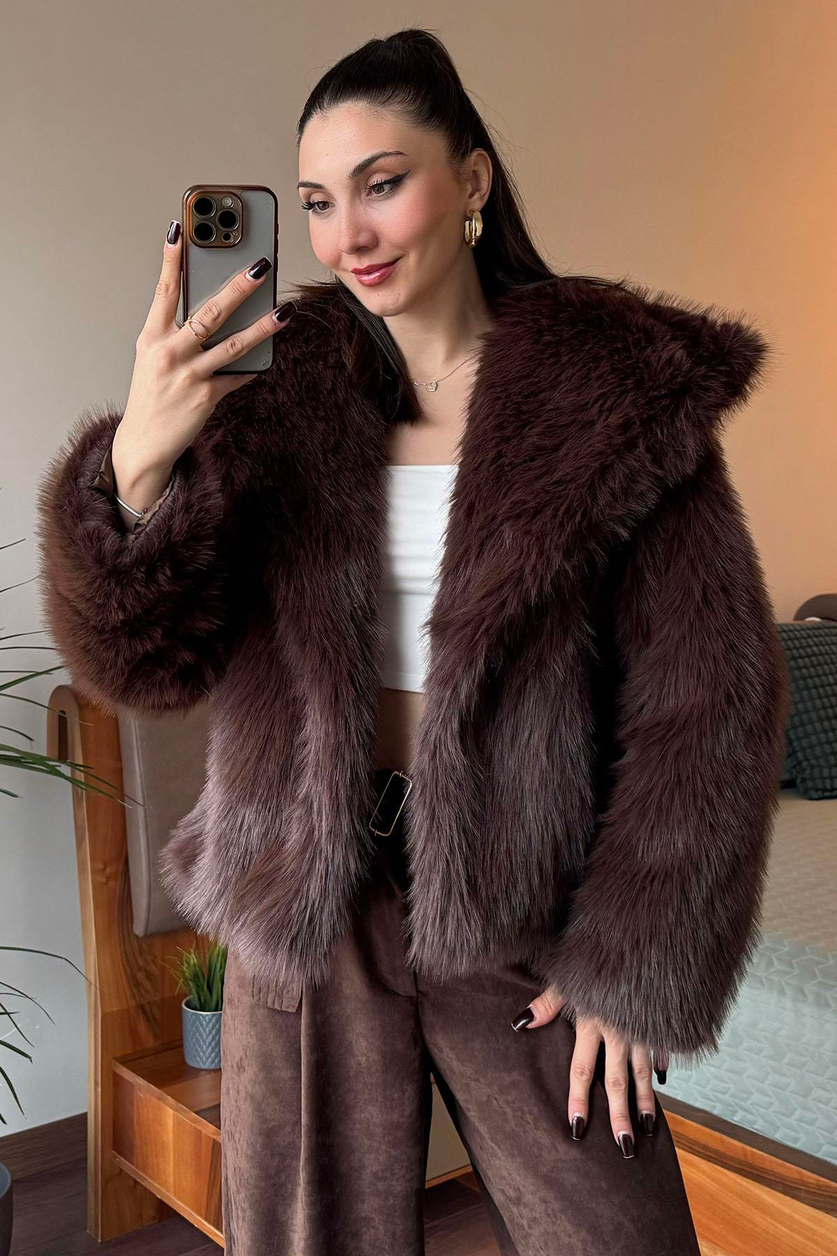 Kahverengi Ara Boy Lolita Kürk Mont (MBTR2429)