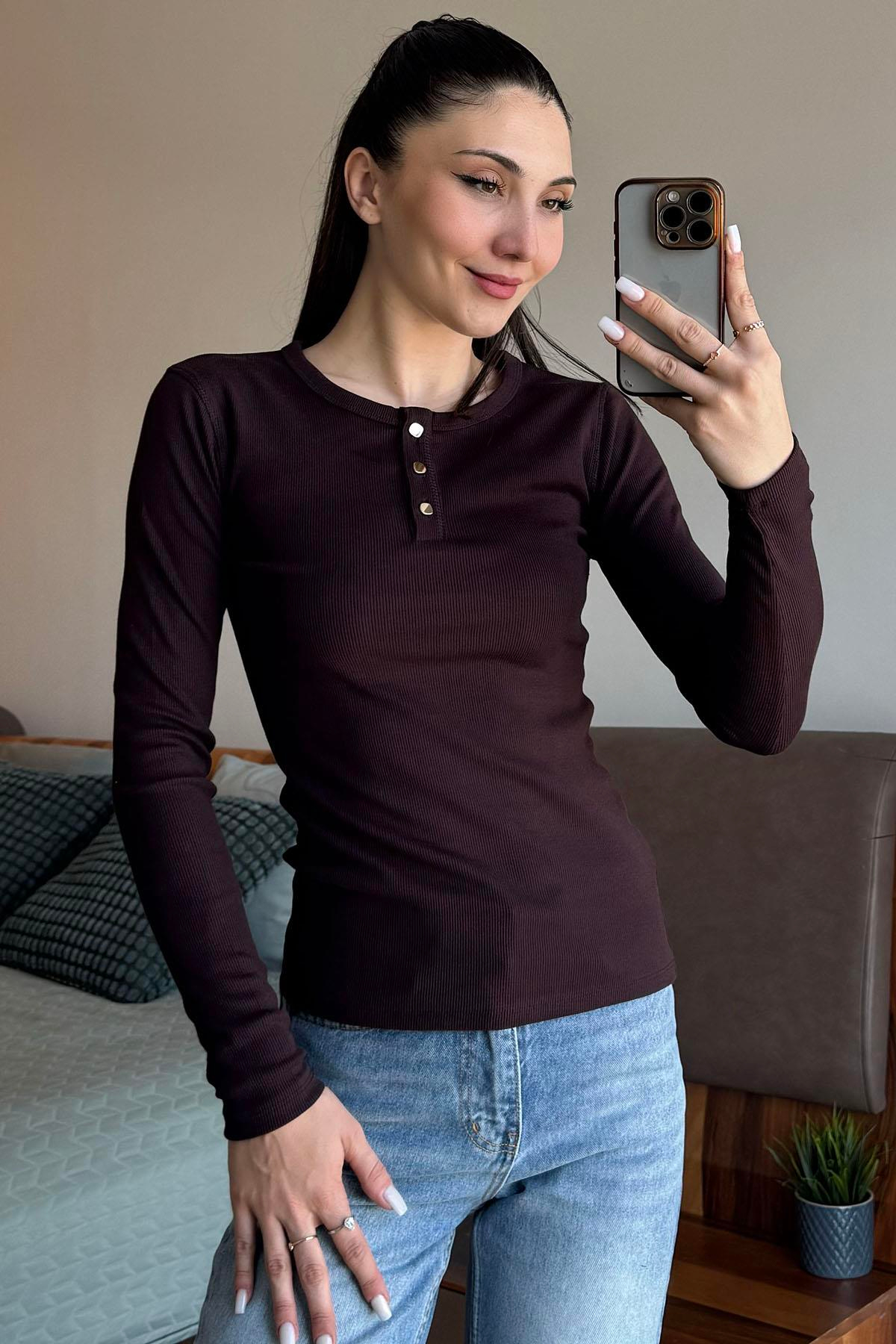 Kahverengi Önü Düğmeli Kaşkorse Bluz (MBKR16492)