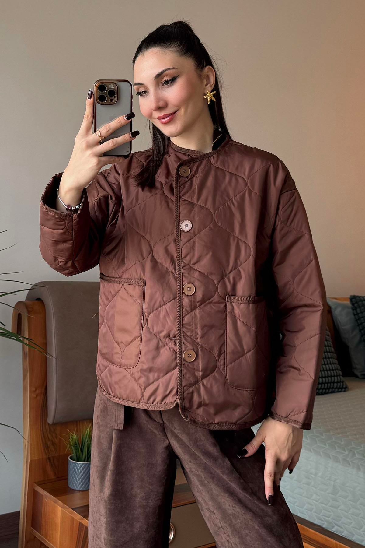 Kahverengi Prag Kapitone Ceket (MBHF509041)