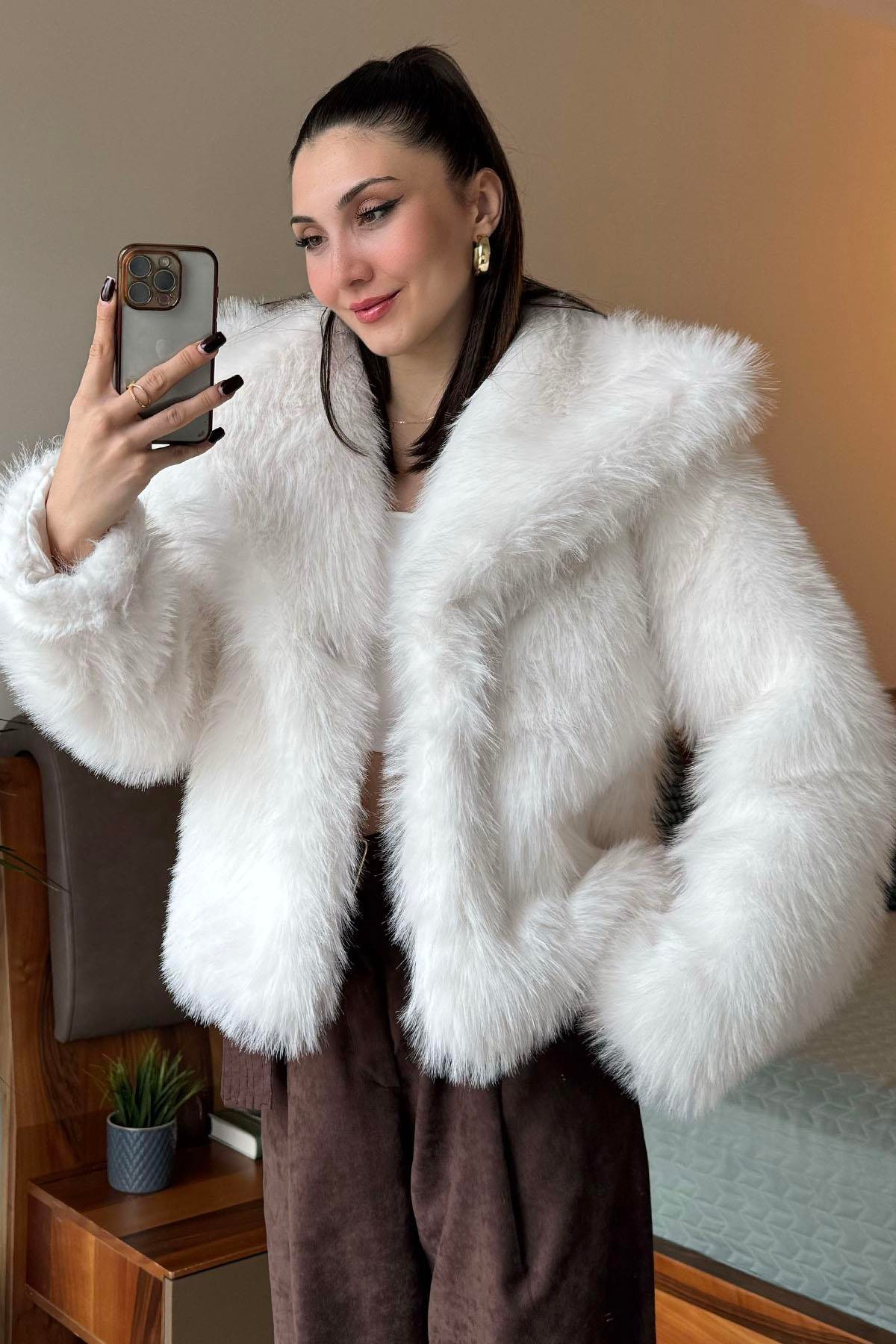 Krem Ara Boy Lolita Kürk Mont (MBTR2429)