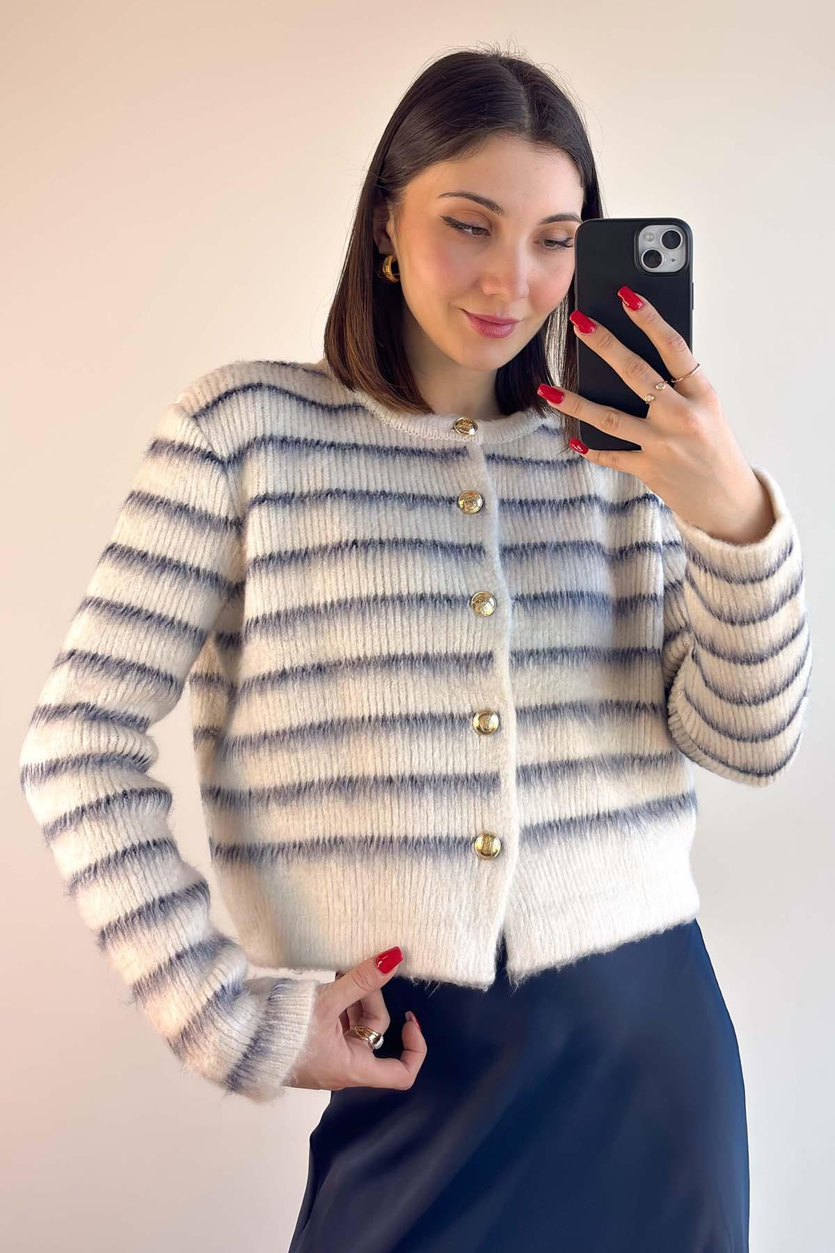 Krem Sakallı Gold Düğme Detaylı Hırka