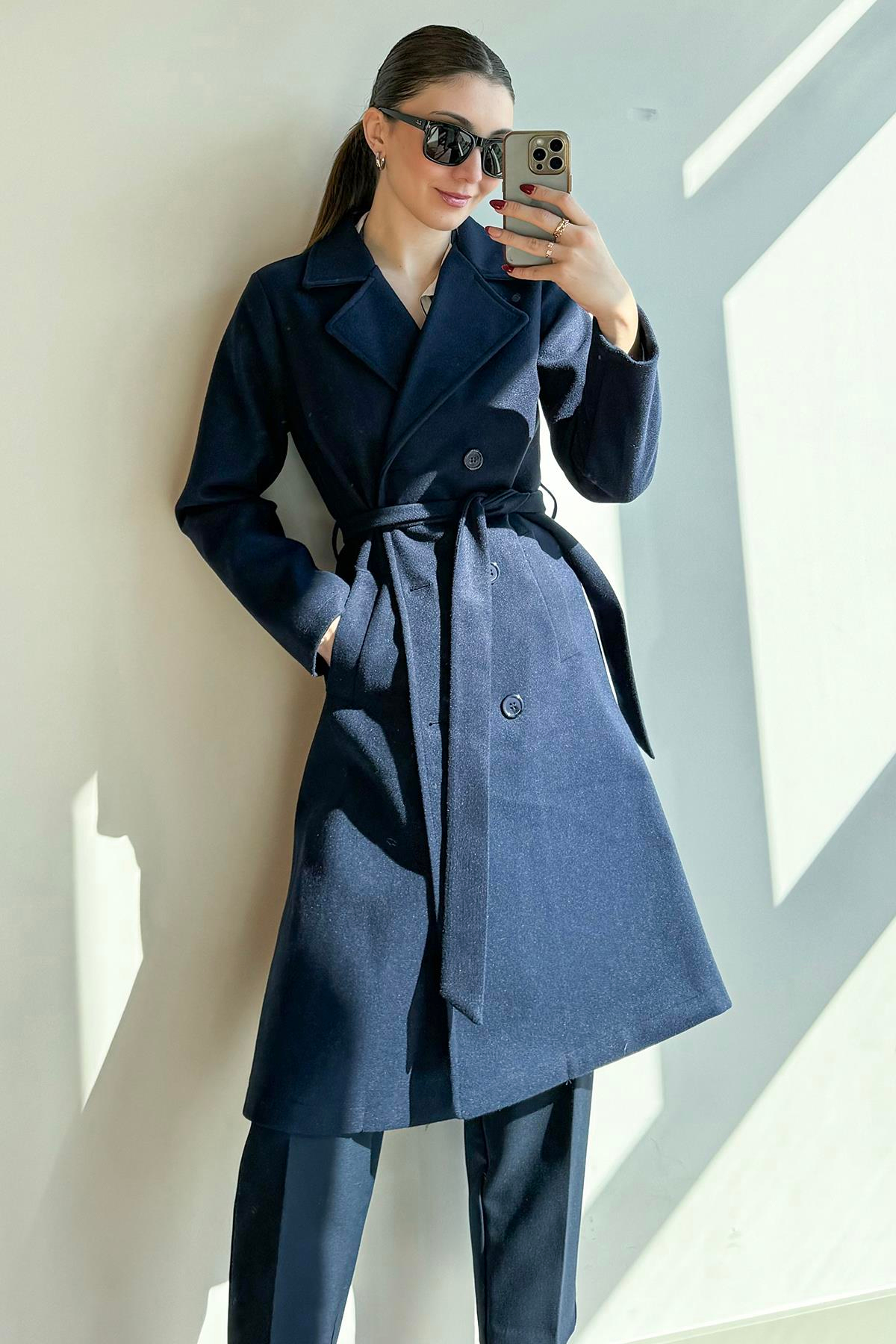 Lacivert Cepli Altı Düğmeli Kaşe Kaban