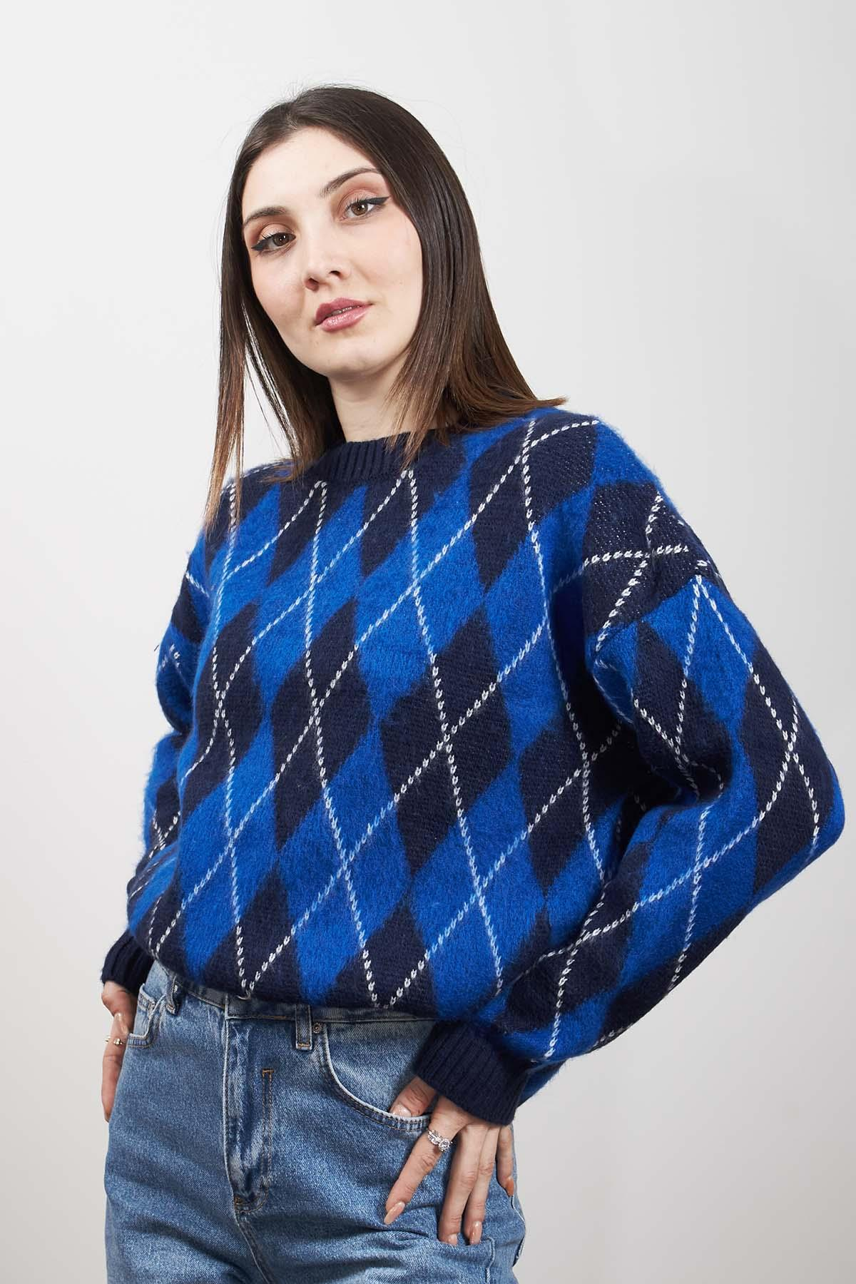Mavi Wully Baklava Desenli Şardonlu Kazak