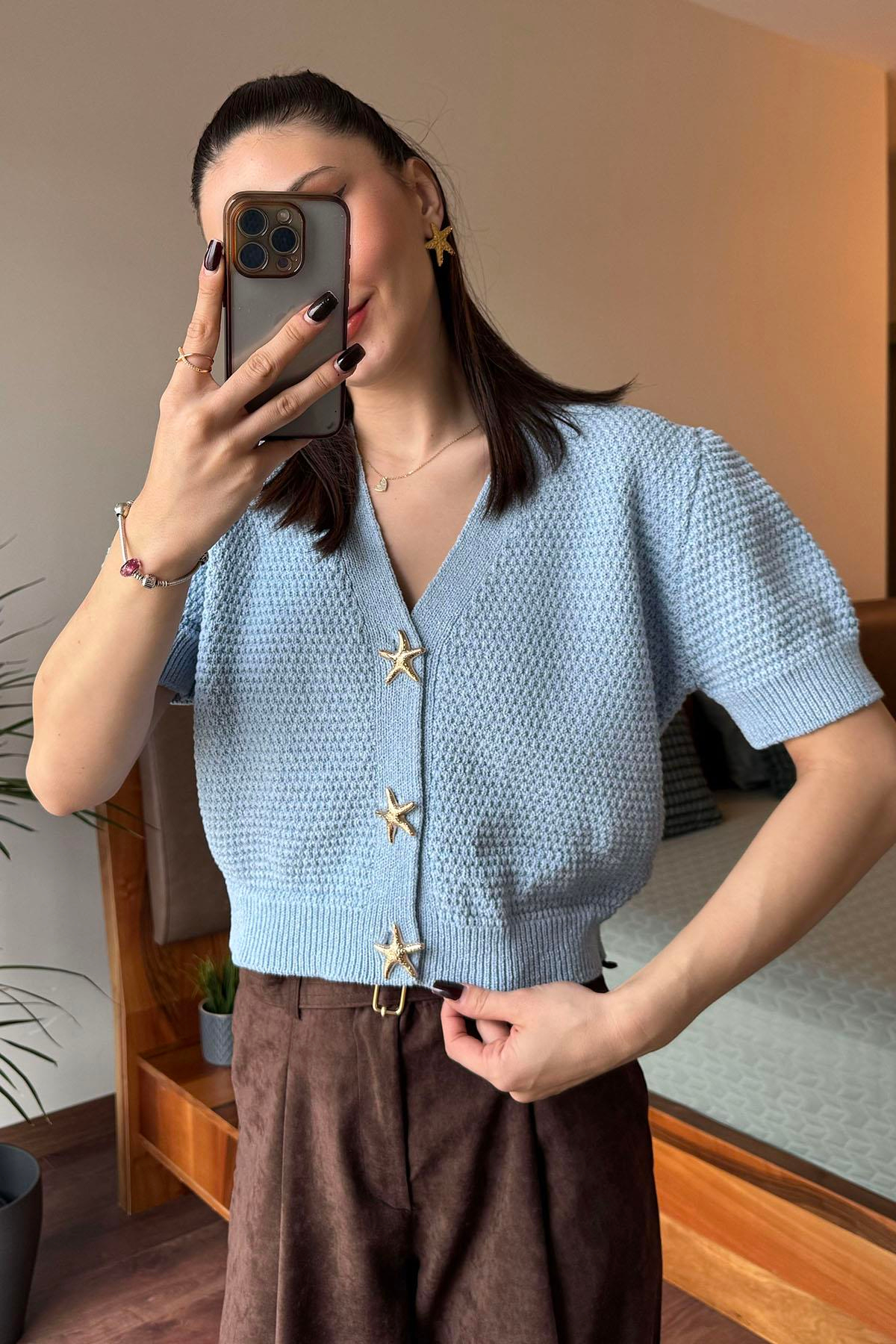 Mavi Yıdlız Düğmeli Triko hırka