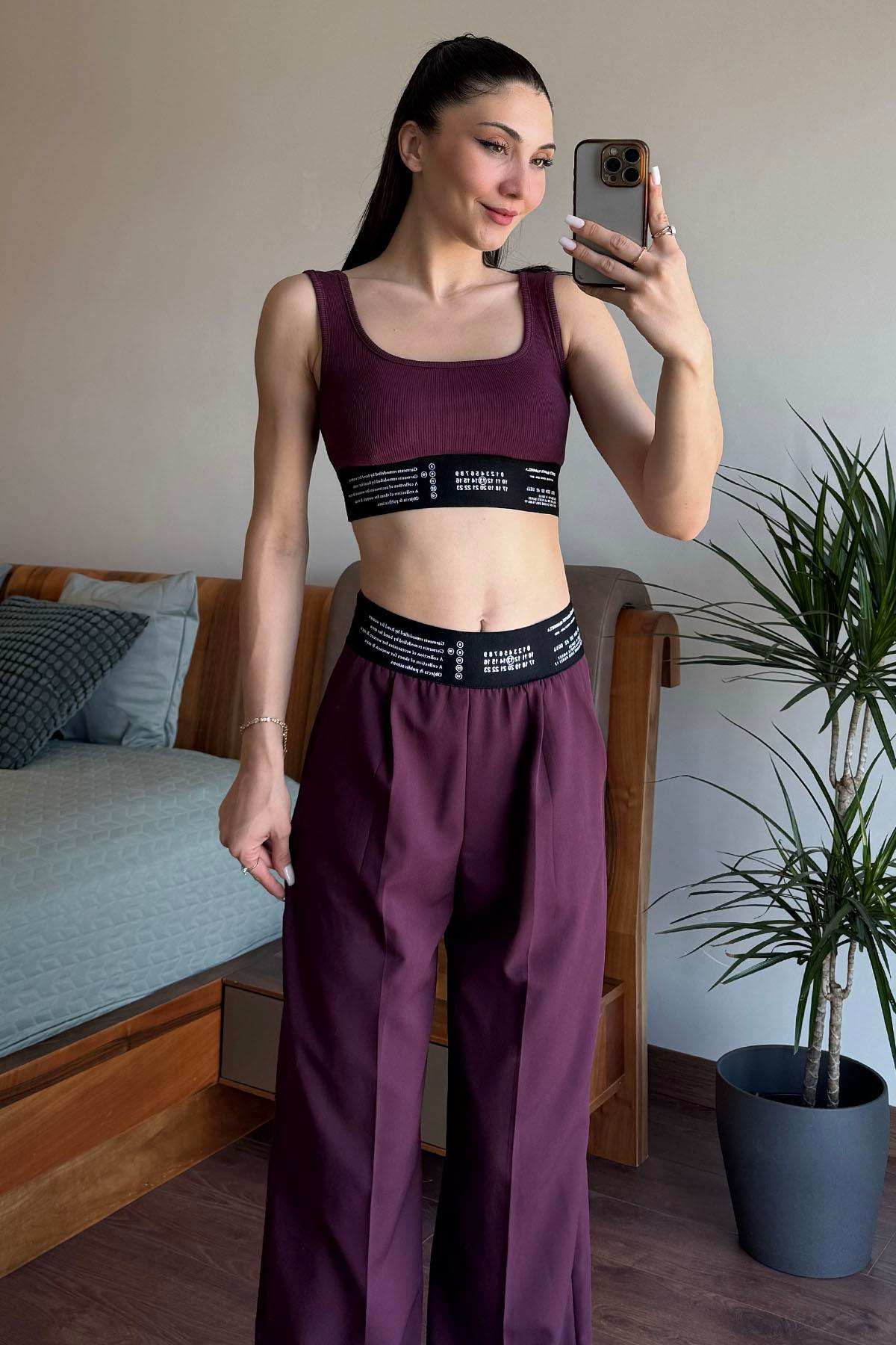 Mürdüm Lastik Detaylı Crop Top Atlet