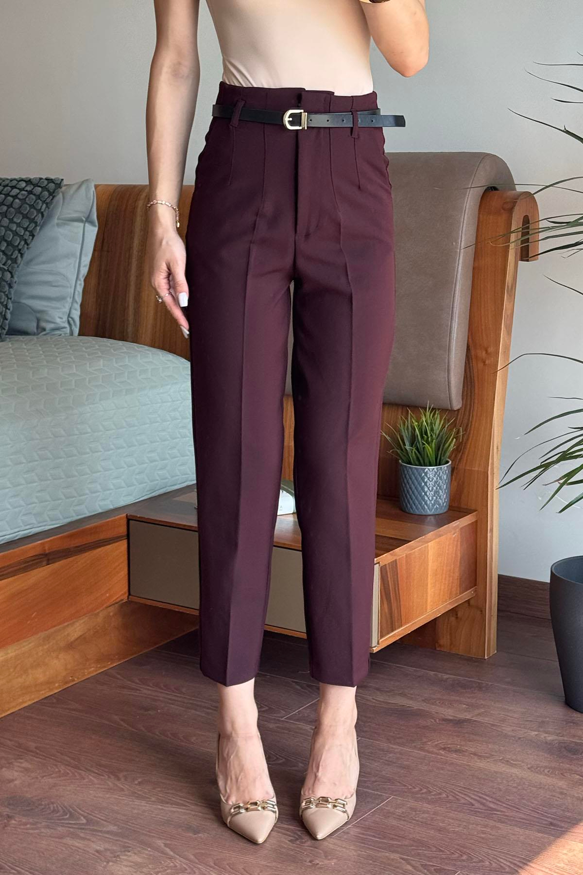 Mürdüm Önü Flatolu Kemerli Pantolon (MBKR16546)