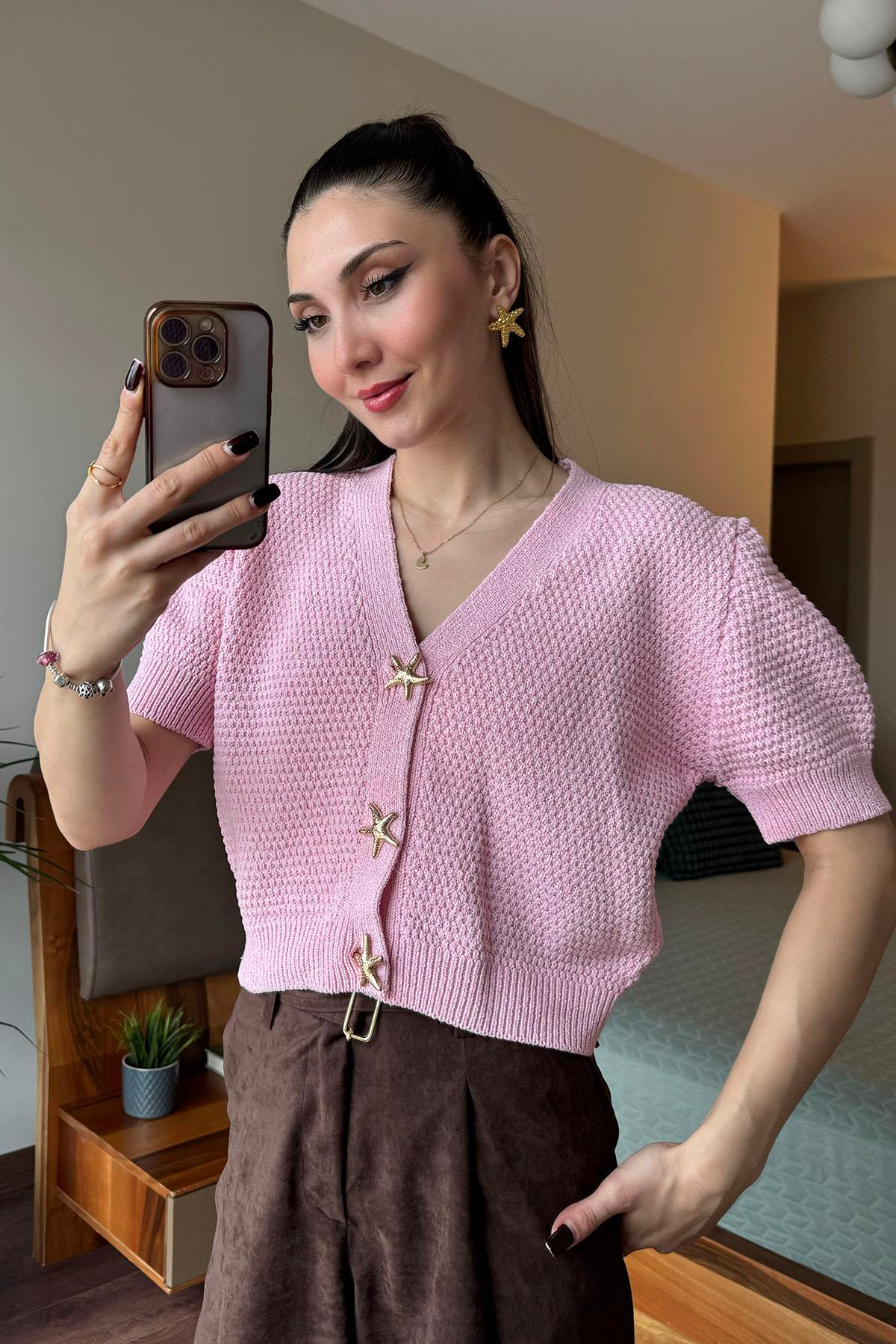 Pembe Yıdlız Düğmeli Triko hırka (MBRW2187)