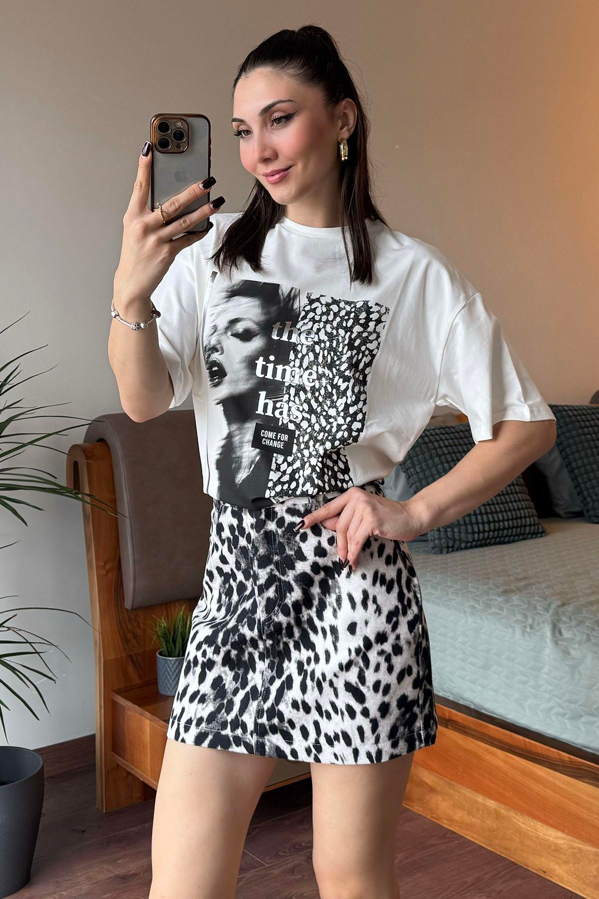 Siyah Beyaz Leopar Desenli Etek (MBQZ00980)