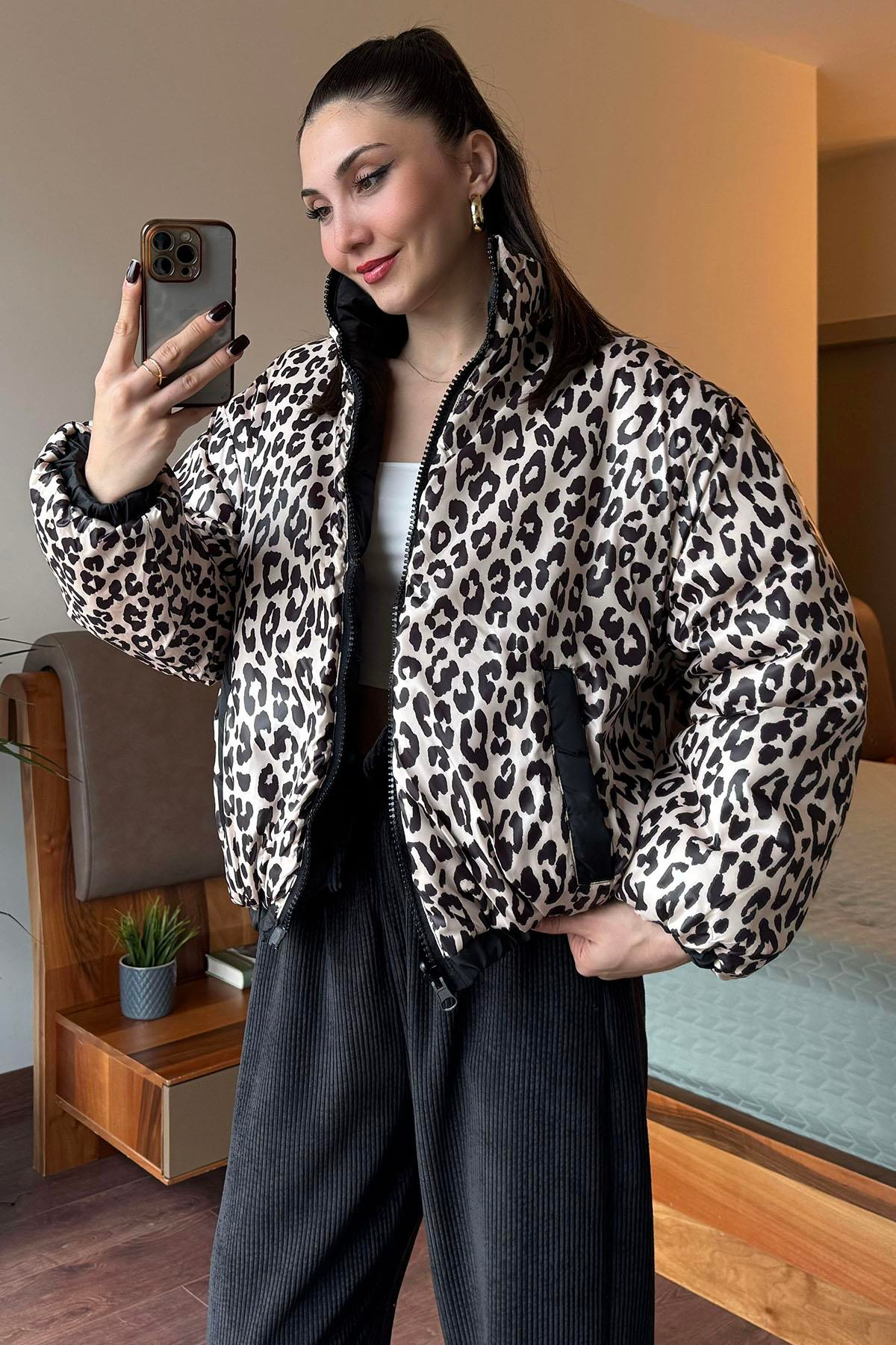 Siyah Çift Taraflı Leopar Mont (MBQZ01292)