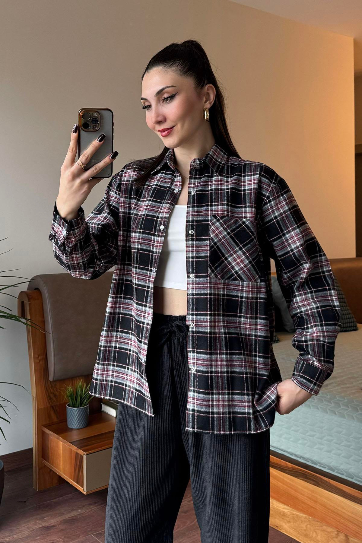 Bordo Çıtçıtlı Oduncu Gömlek Yeşil Çıtçıtlı Oduncu Gömlek