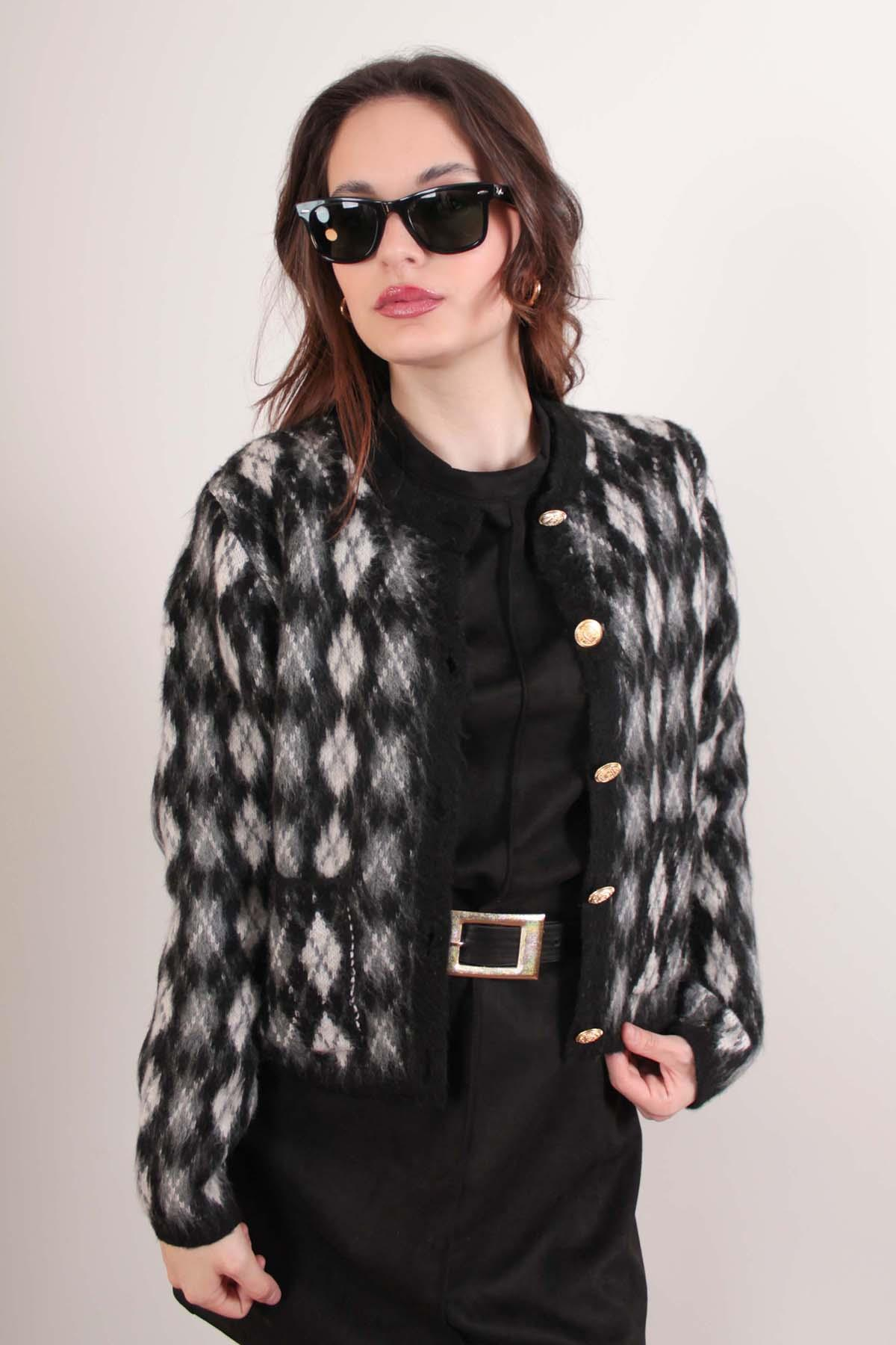 Siyah Ekoseli Gold Düğmeli Bella Hırka