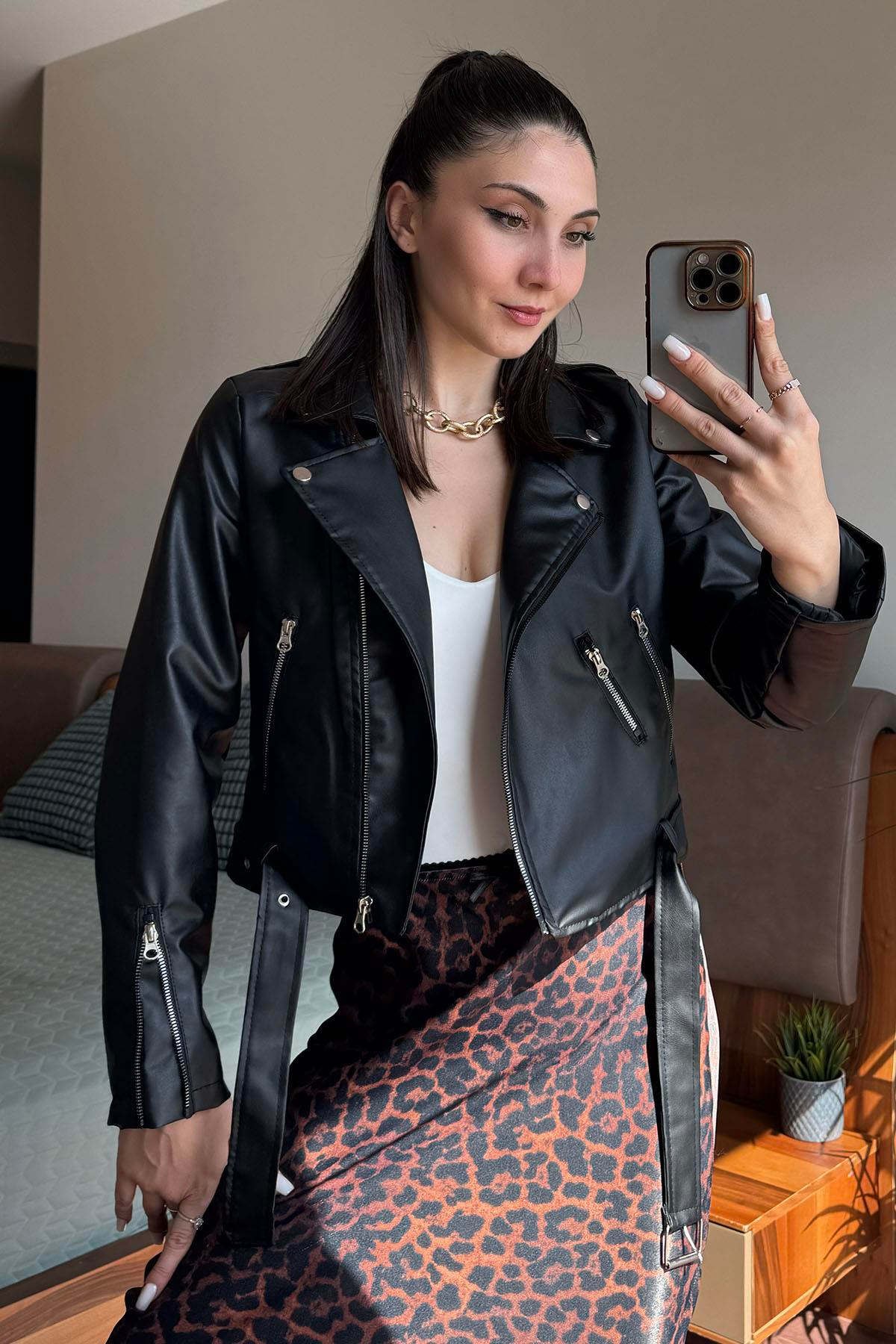 Siyah Fermuarlı Deri Mont (MBTR2061)
