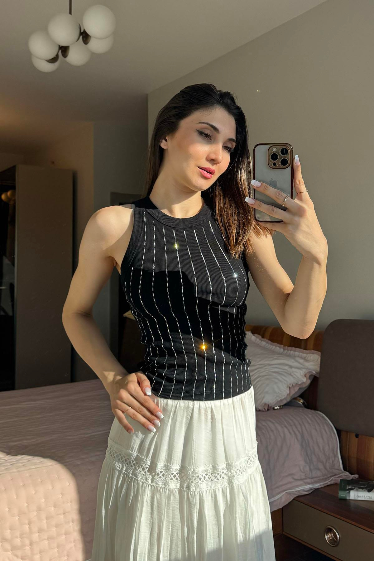 Siyah Halter Yaka Taş Baskılı Atlet (MBQU02)