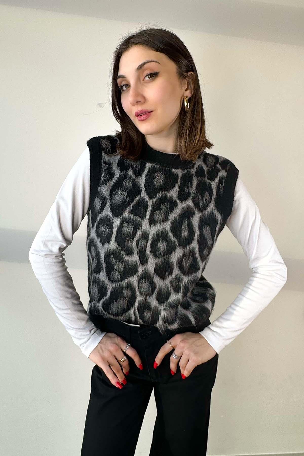 Siyah Leopar Desen İpek Süveter (MBPM2257)