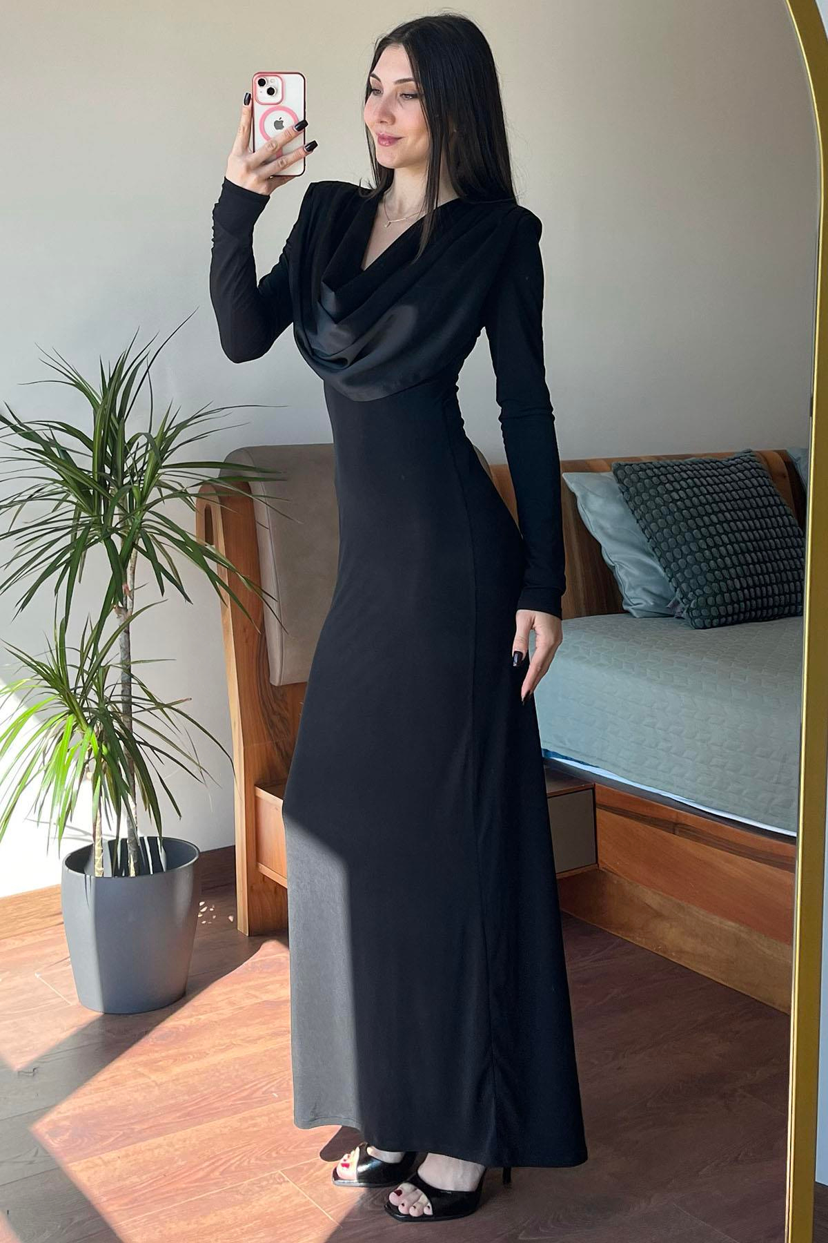 Siyah Pileli Degaje Yaka Elbise (MBKZ252649)