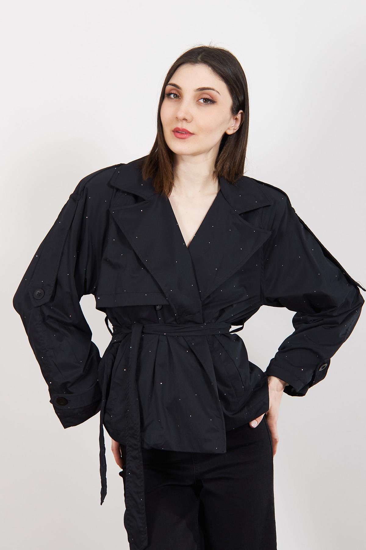 Siyah Serpme Taşlı Crop Trençkot (MBFP9544)