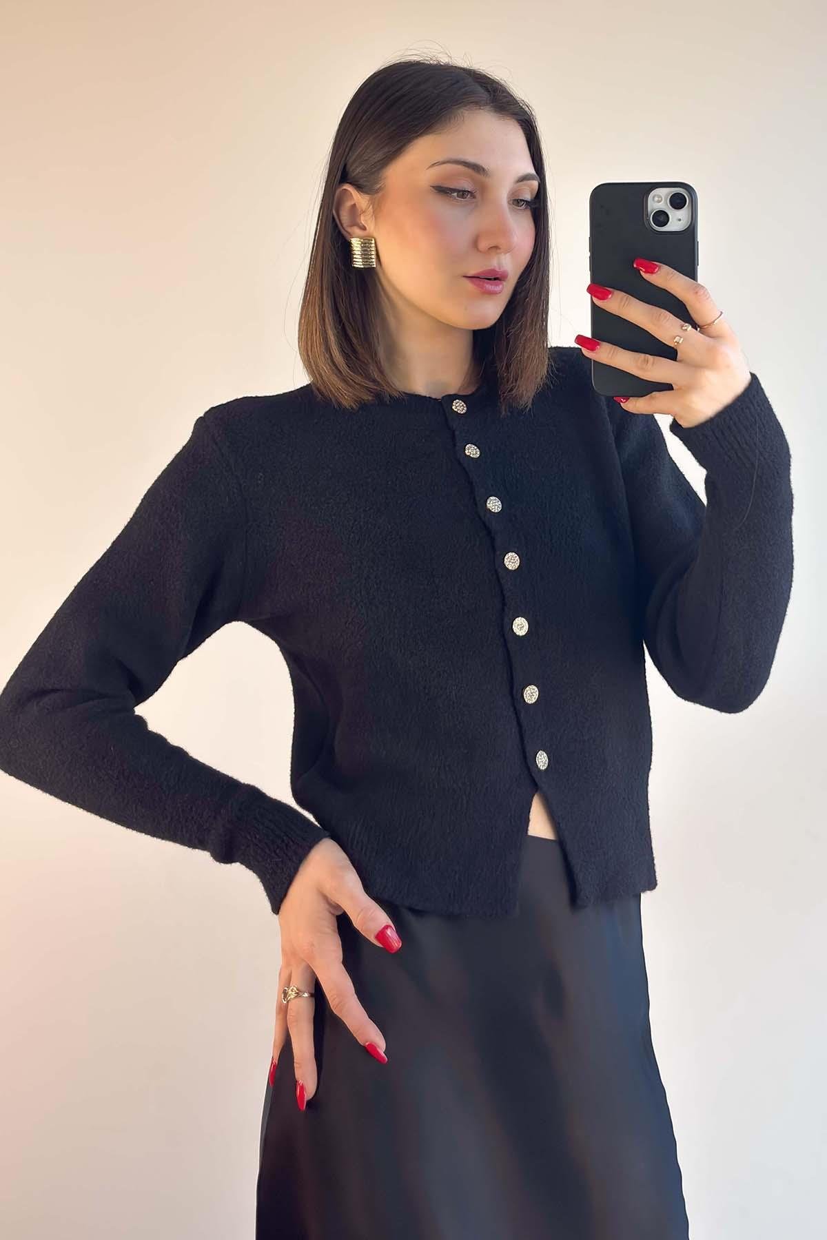 Siyah Taş Düğmeli Soft Hırka (MBDK2438)
