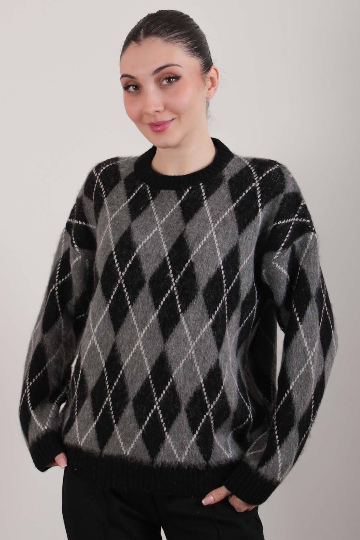 Siyah Wully Baklava Desenli Şardonlu Kazak (MBPM2322)
