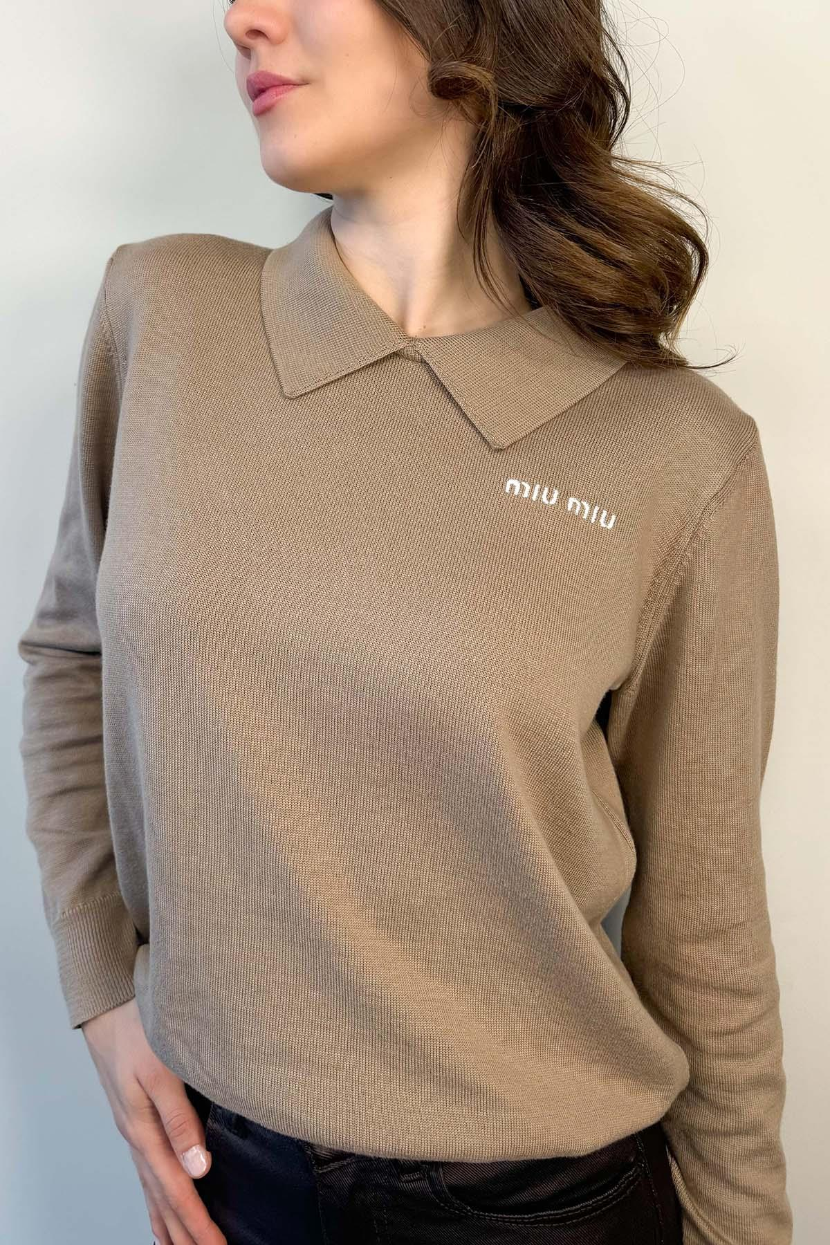 Vizon Nakışlı Polo Yaka Triko Kazak