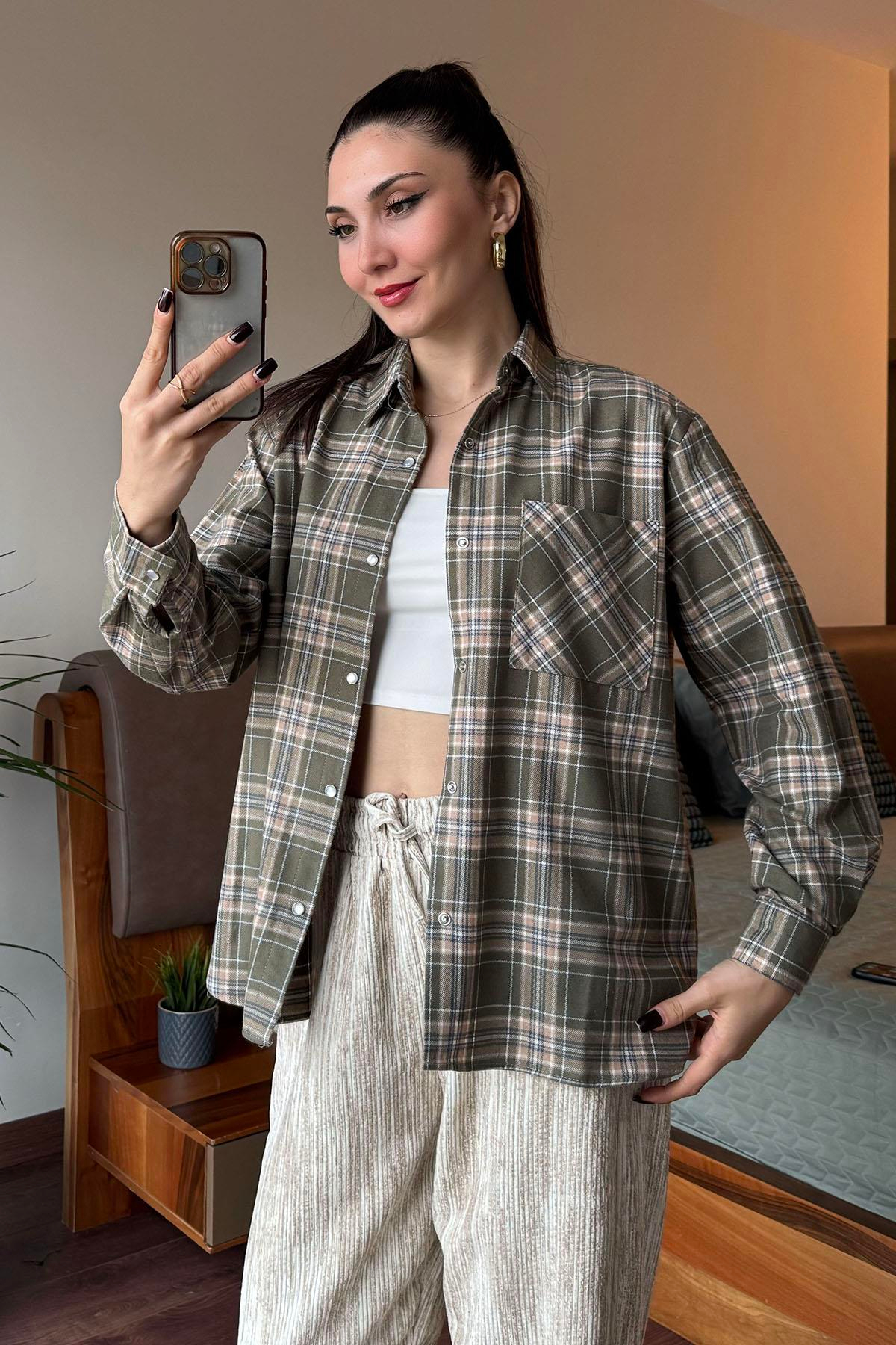 Yeşil Çıtçıtlı Oduncu Gömlek (MBQU251043)